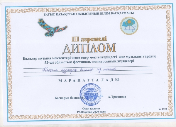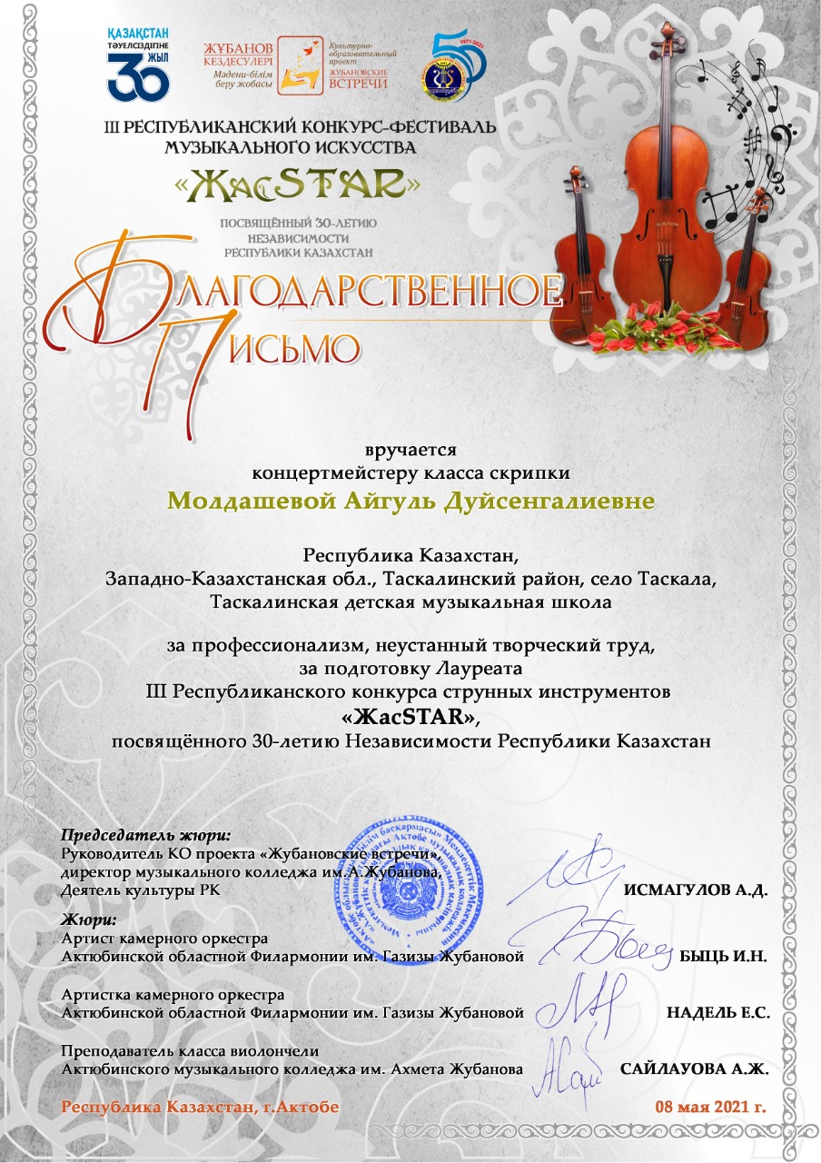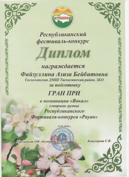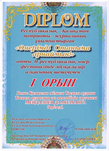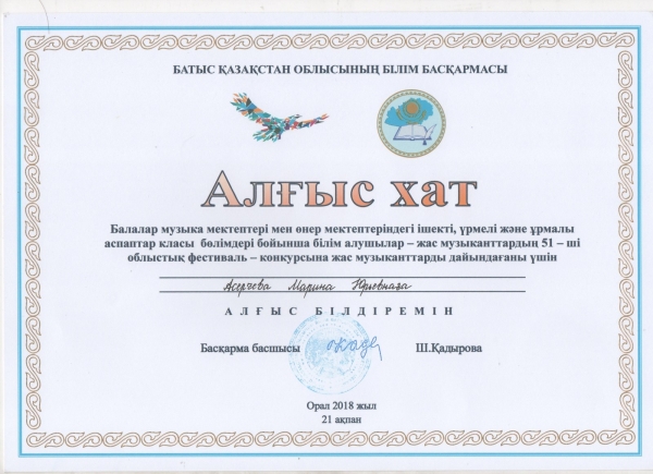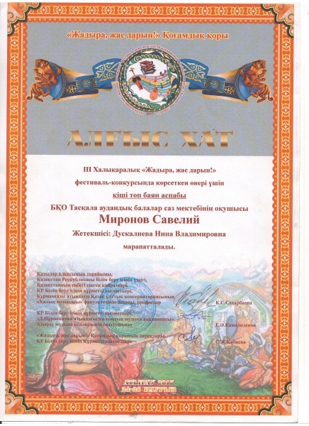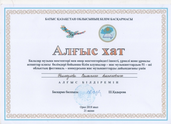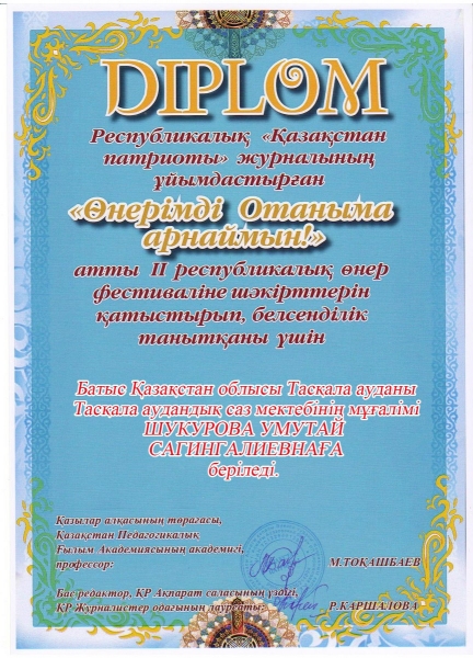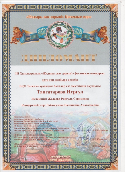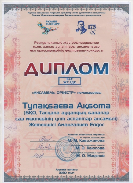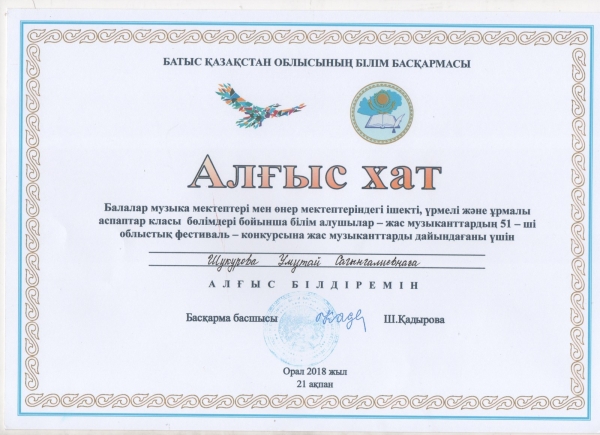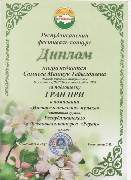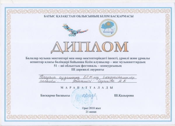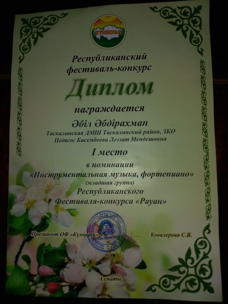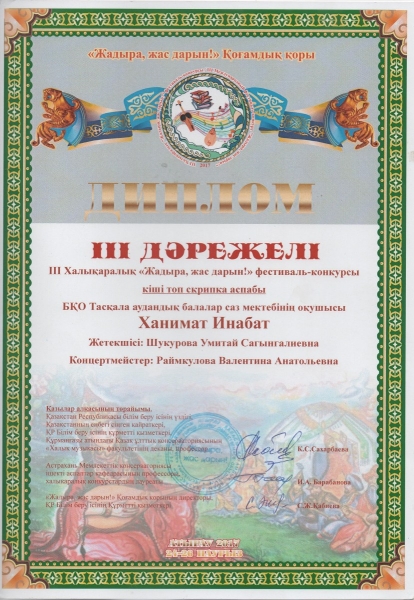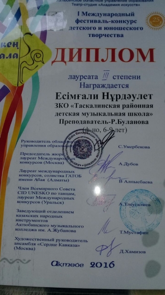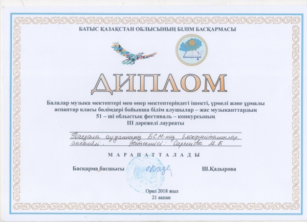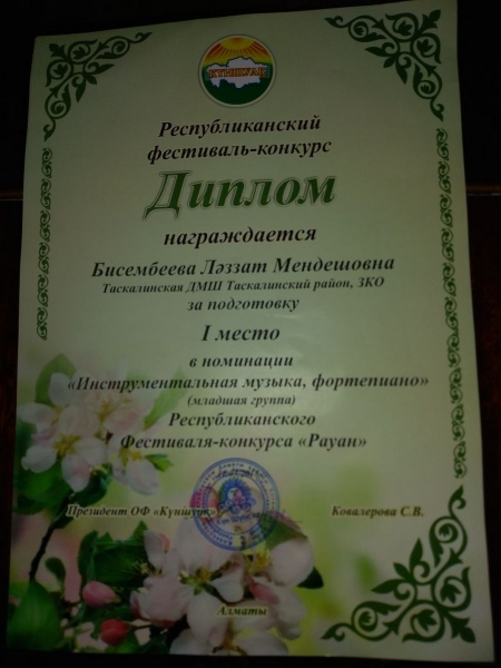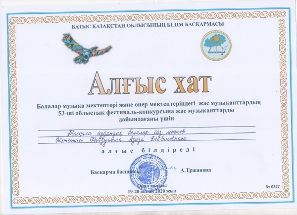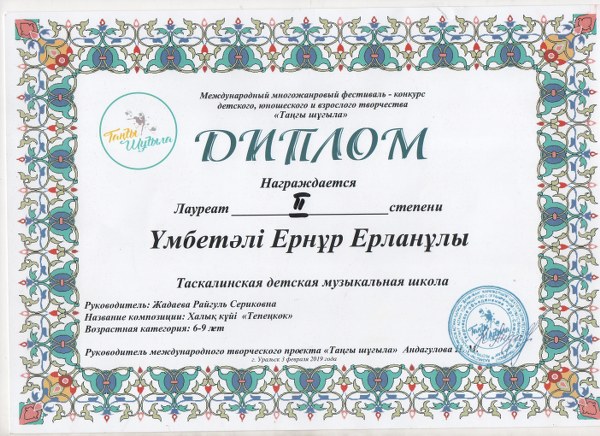 Управление образования акимата Таскалинского района Западно-Казахстанской области МУ «Детская музыкальная школа»