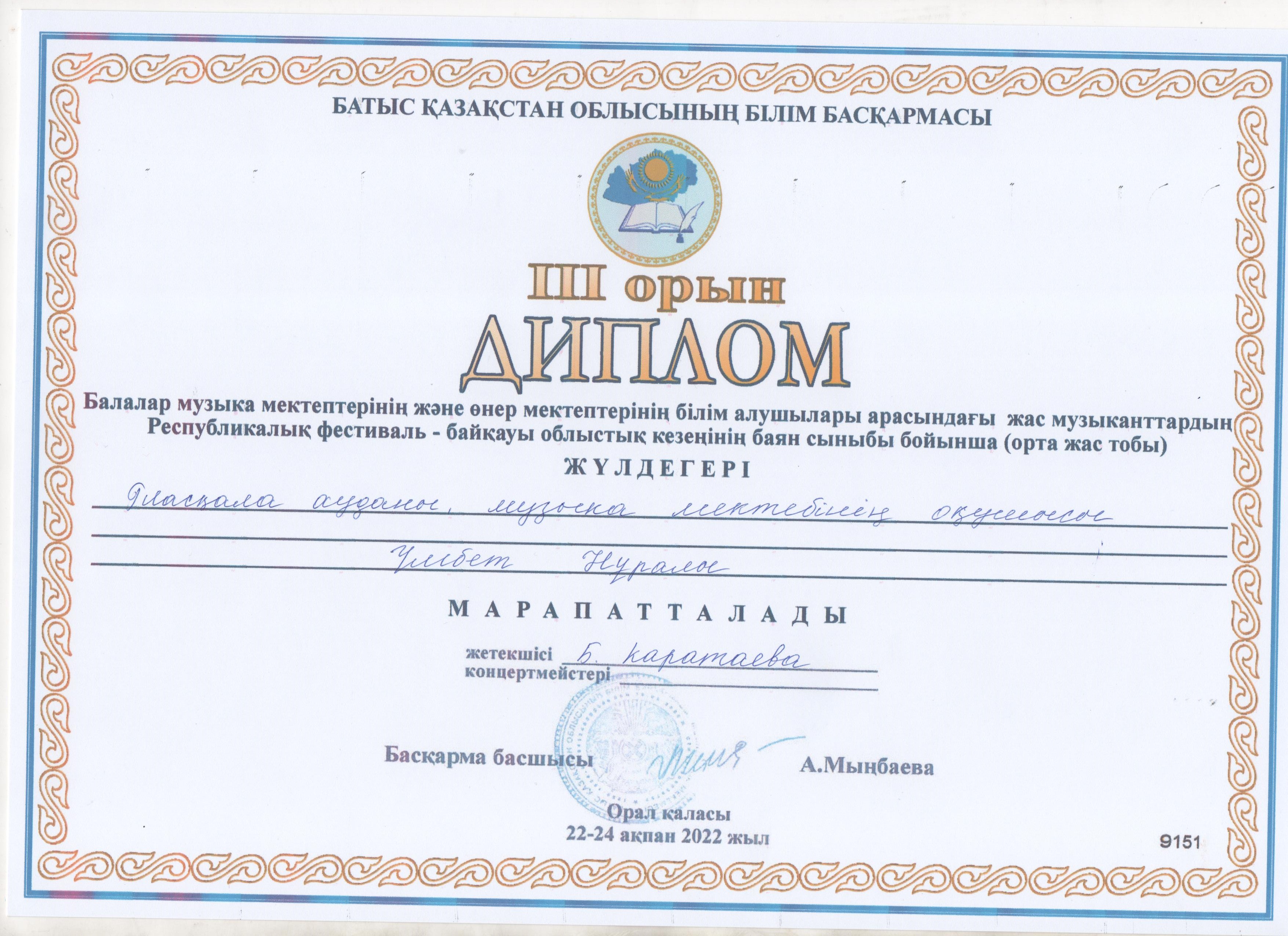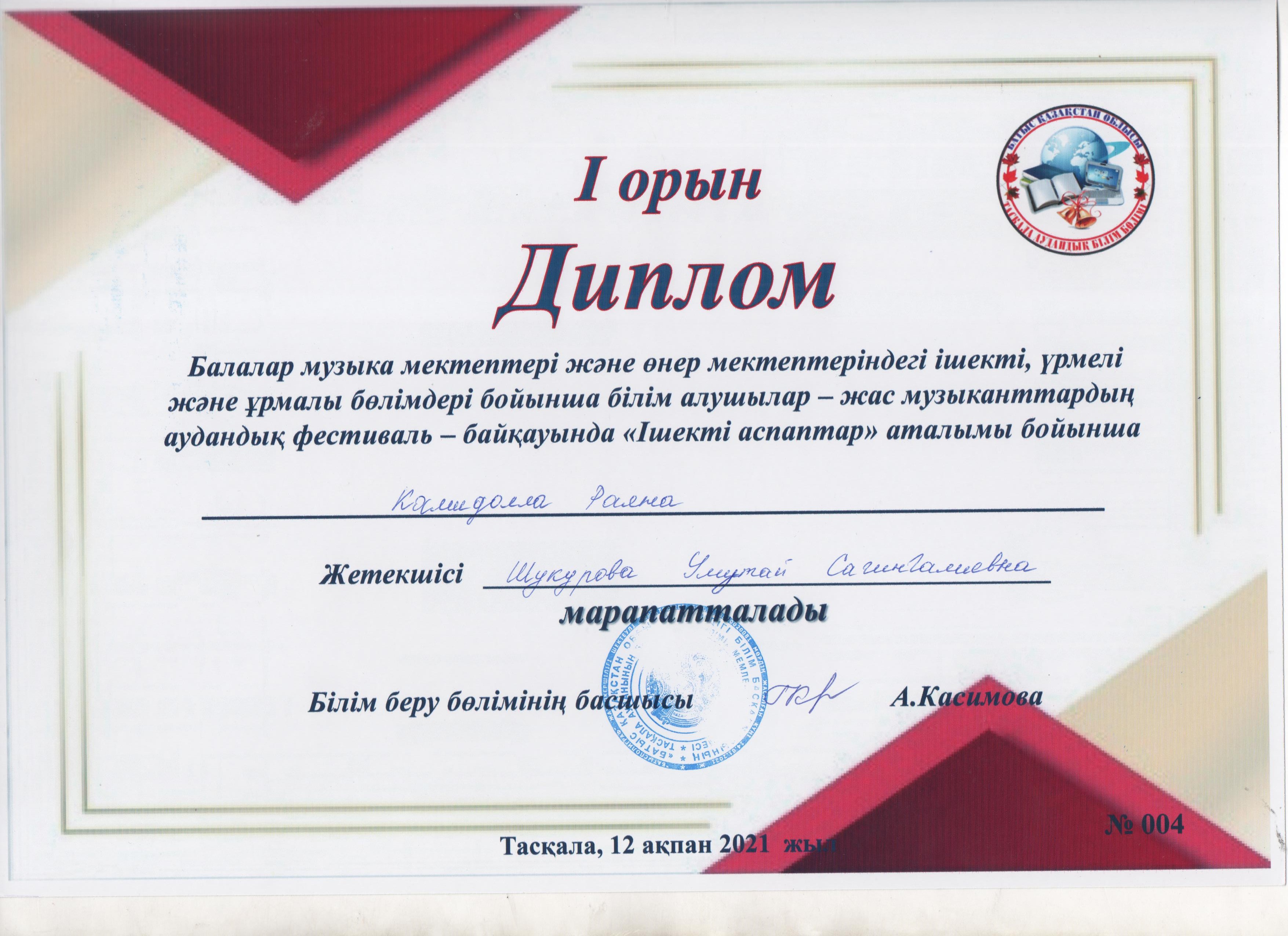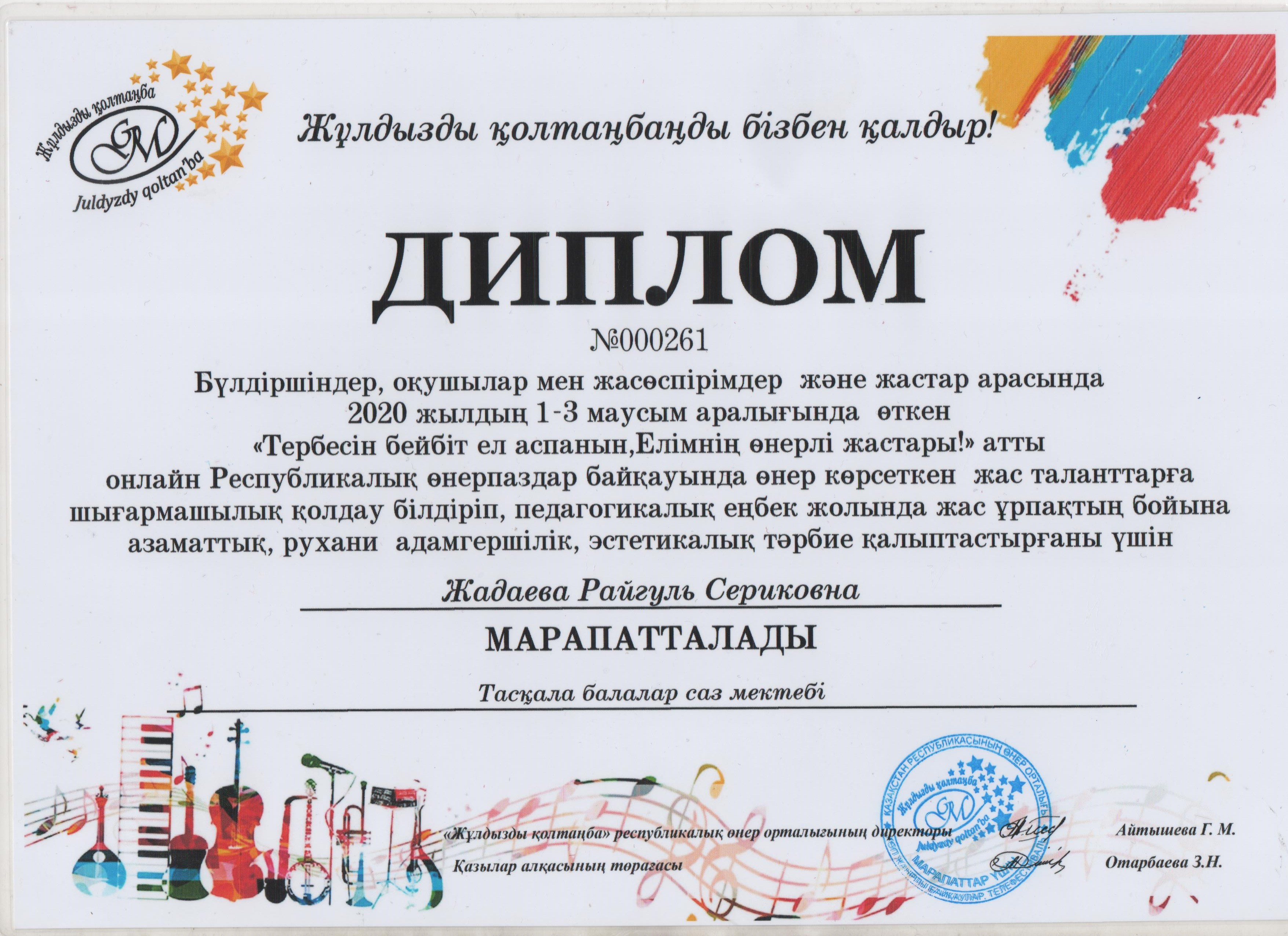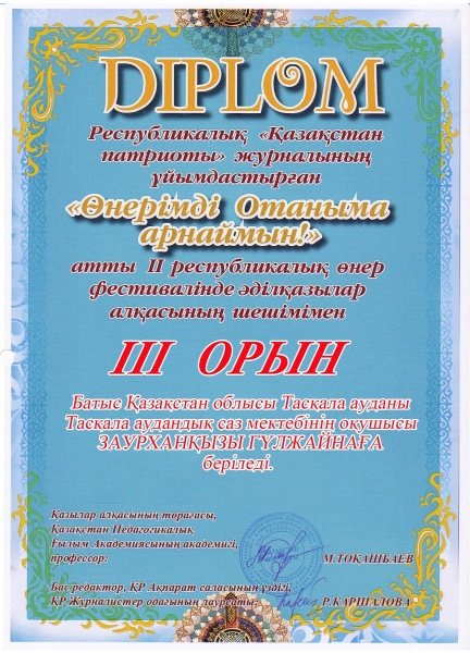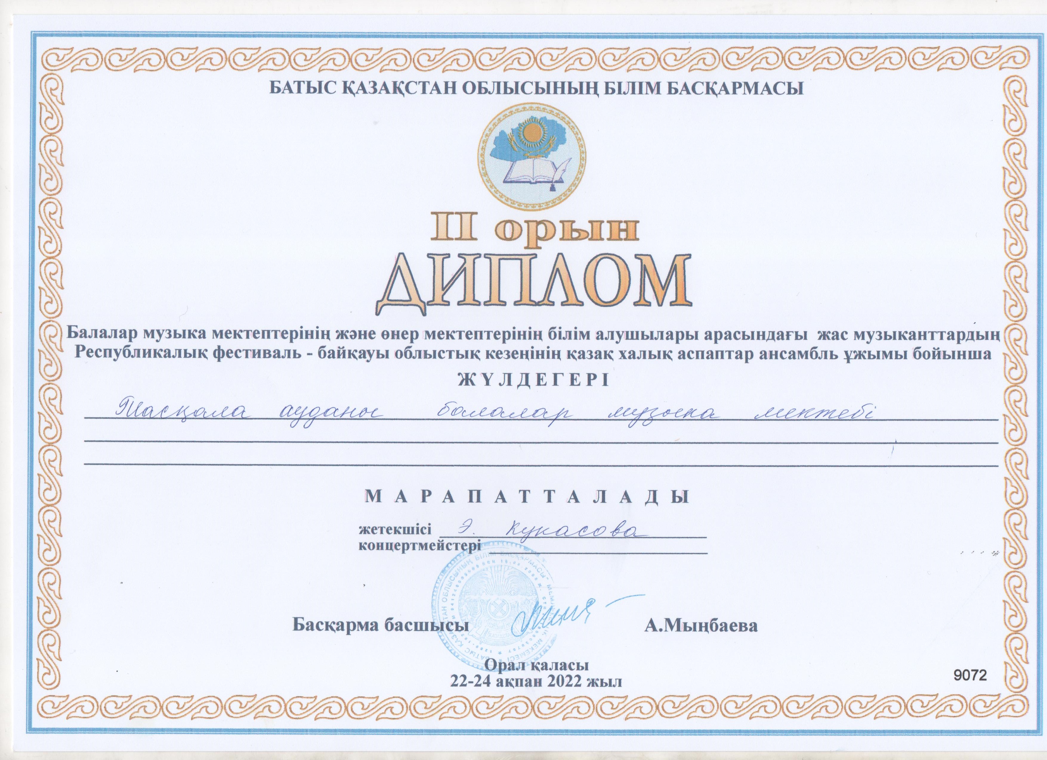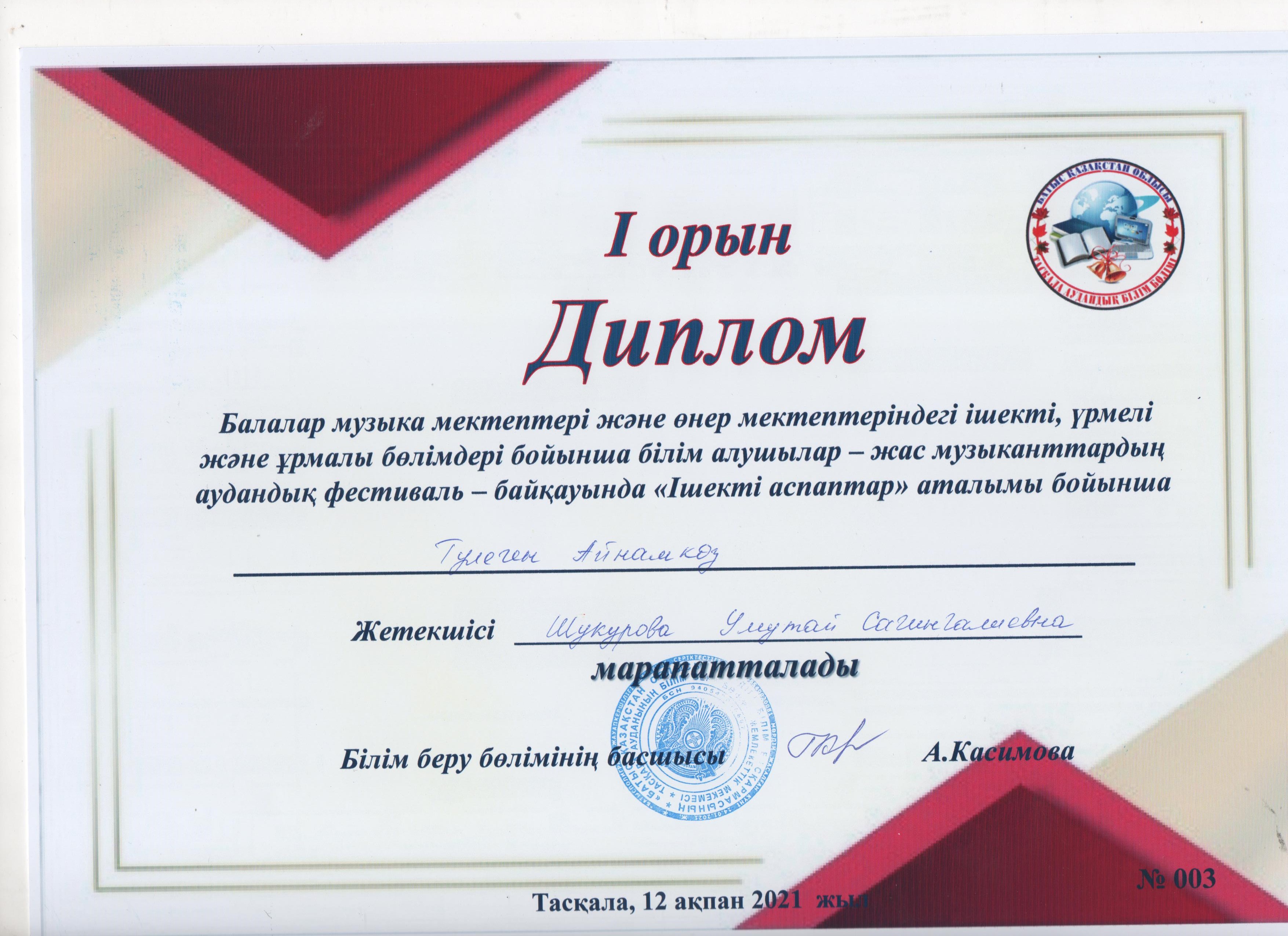 Управление образования акимата Таскалинского района Западно-Казахстанской области МУ «Детская музыкальная школа»