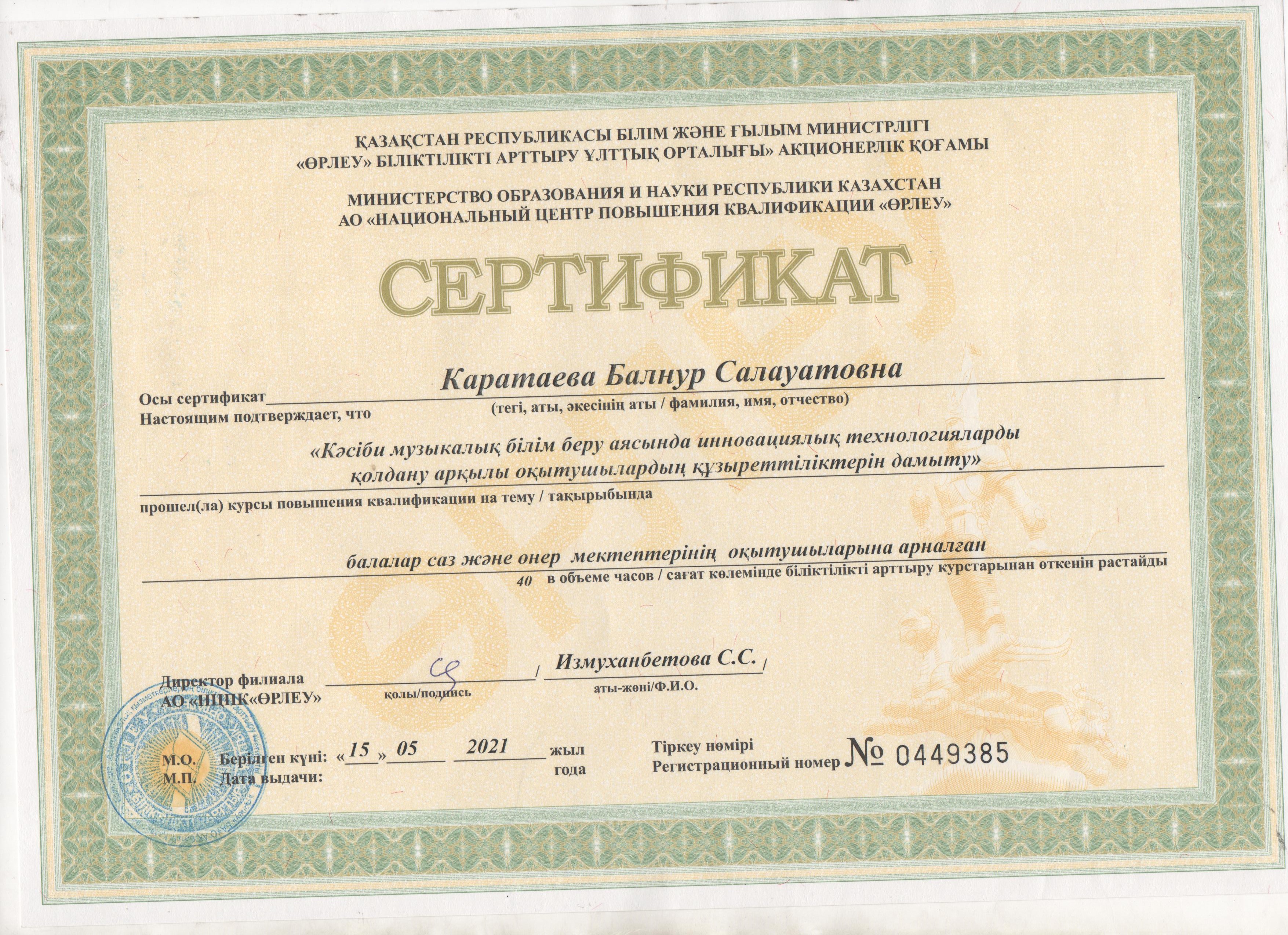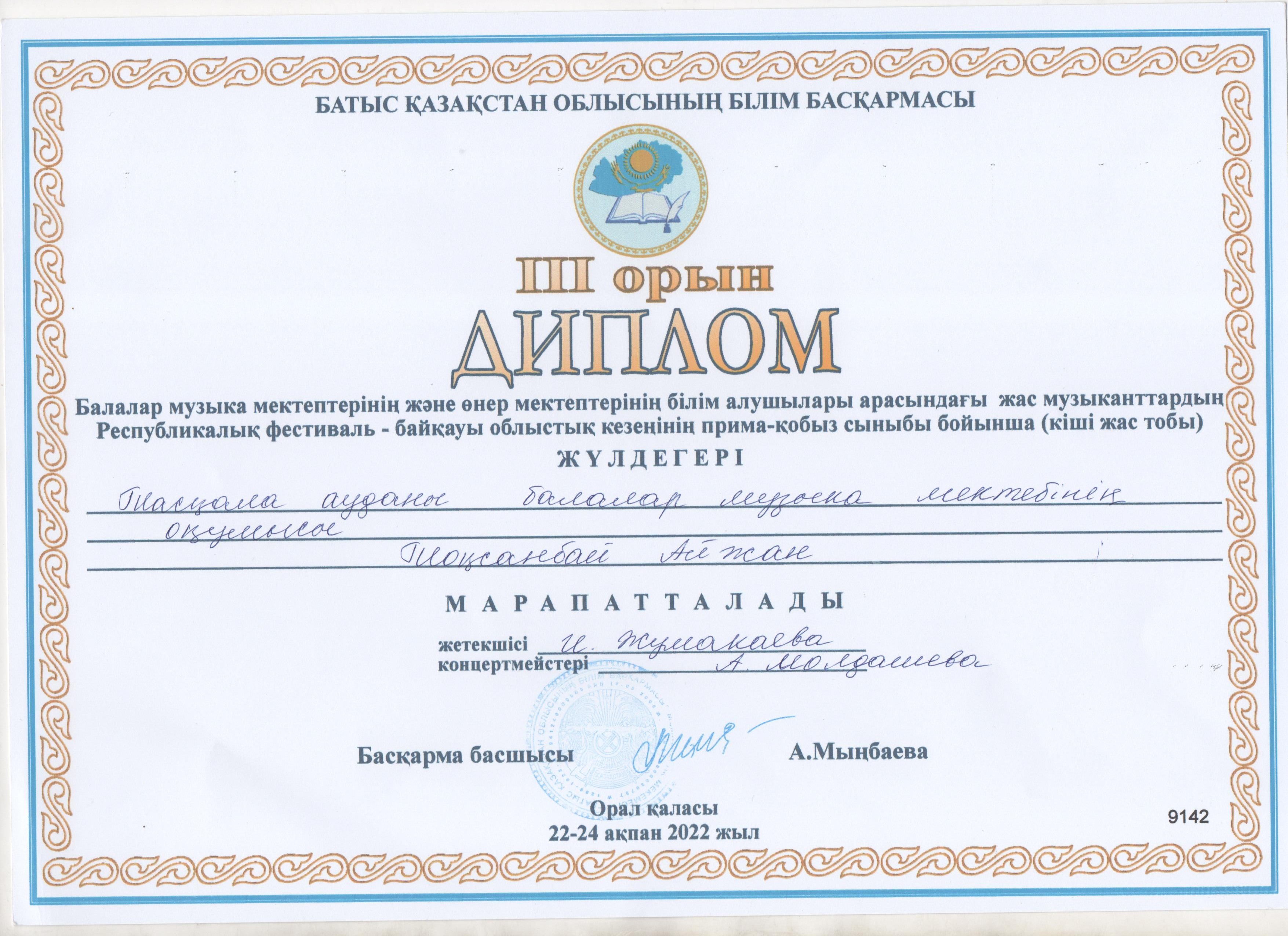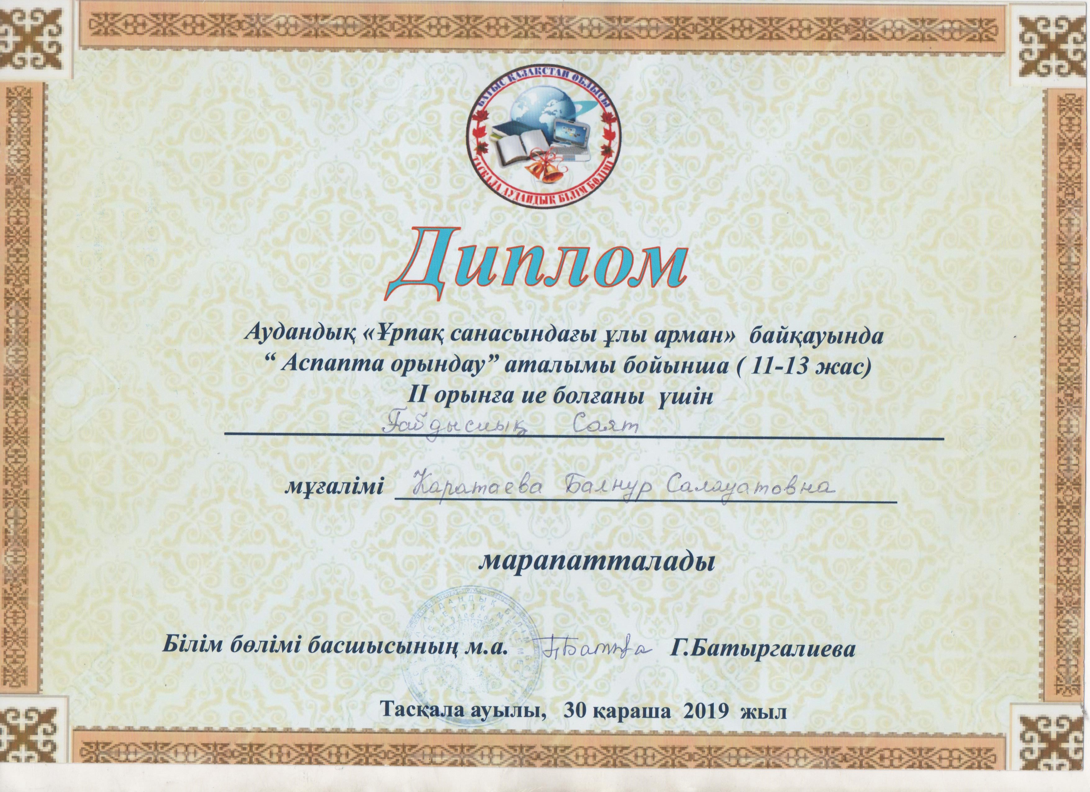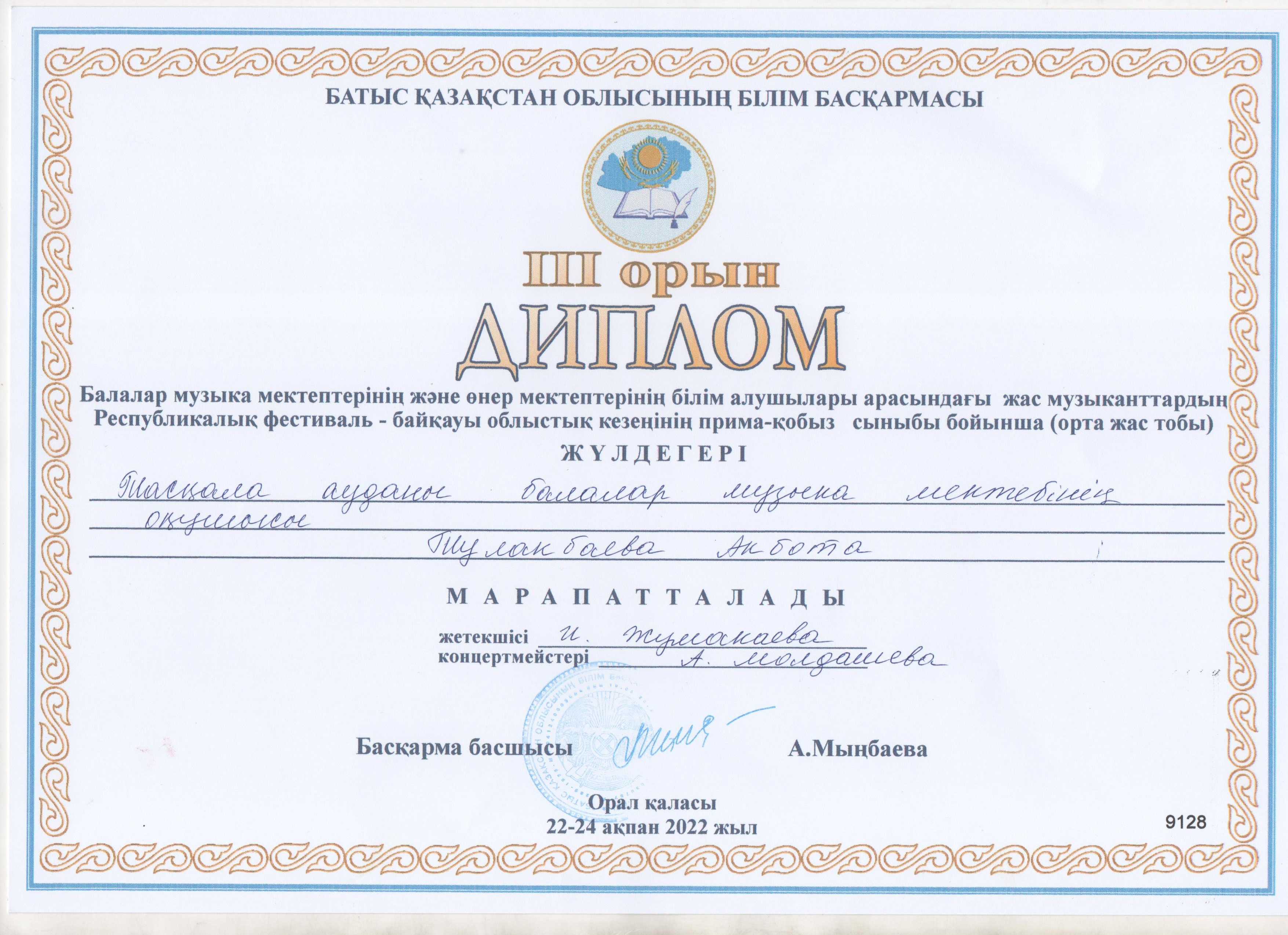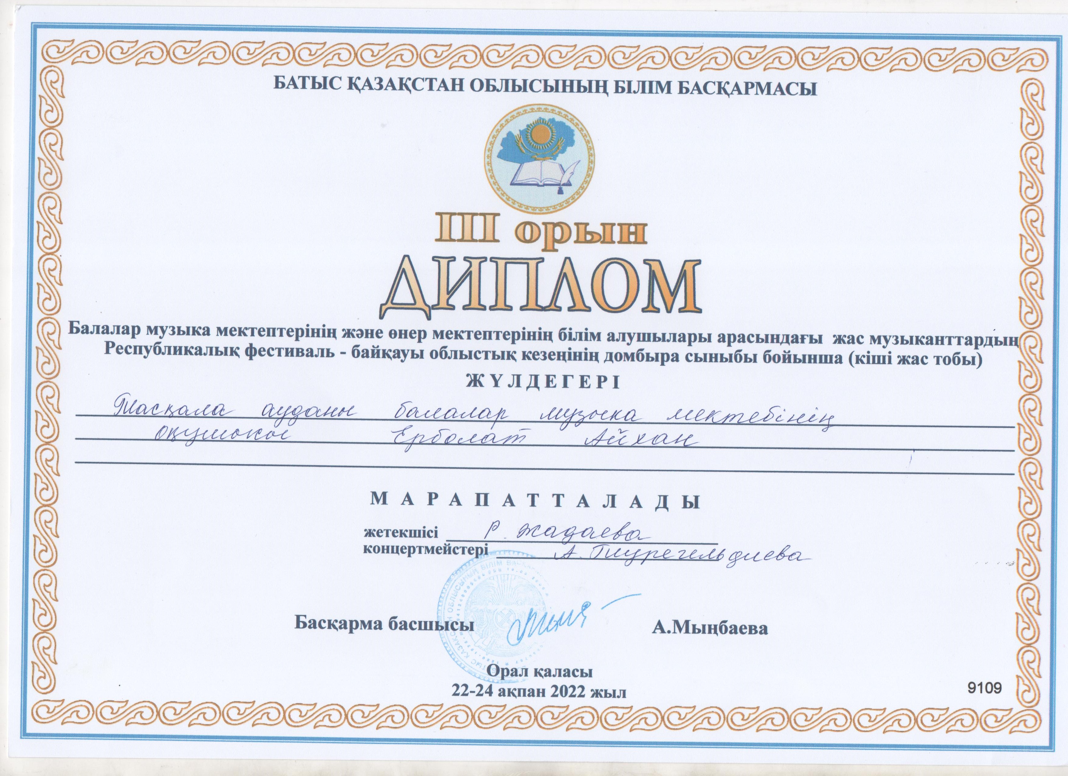 Управление образования акимата Таскалинского района Западно-Казахстанской области МУ «Детская музыкальная школа»